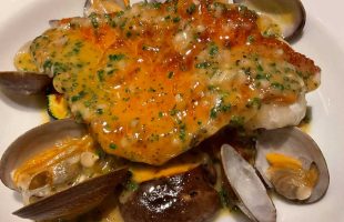 白子ムニエル、下仁田ねぎ、ポルト酒の玉ねぎソース“ 寒くなると食べたくなるたらの…